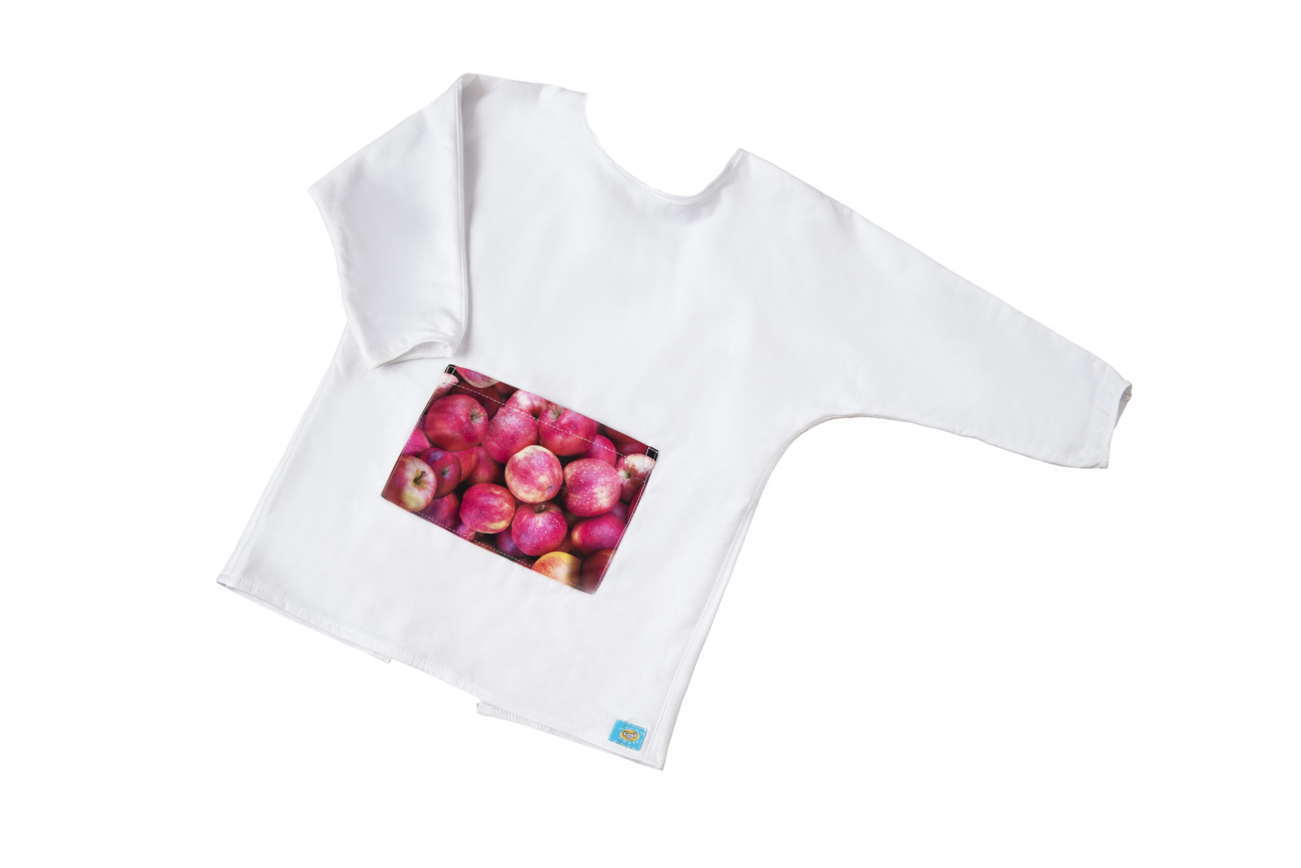Fartuszek został wykonany z bawełny zabezpieczonej nieprzemakalną membraną dla uzyskania miękkiej, plastycznej, ale nieprzemakalnej formy zabezpieczenia dziecka przed zabrudzeniami ubranka wierzchniego. Wielofunkcyjny fartuszek chroni małego użytkownika przed zabrudzeniem, zaplamieniem podczas jedzenia, malowania, wykonywania różnych plac plastycznych czy ” pomagania” w kuchni….