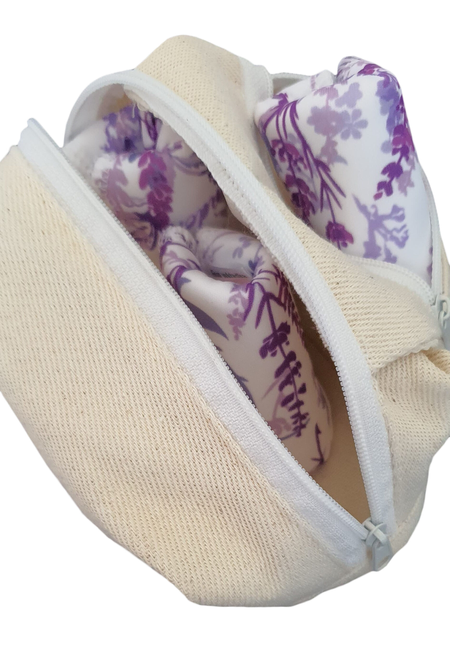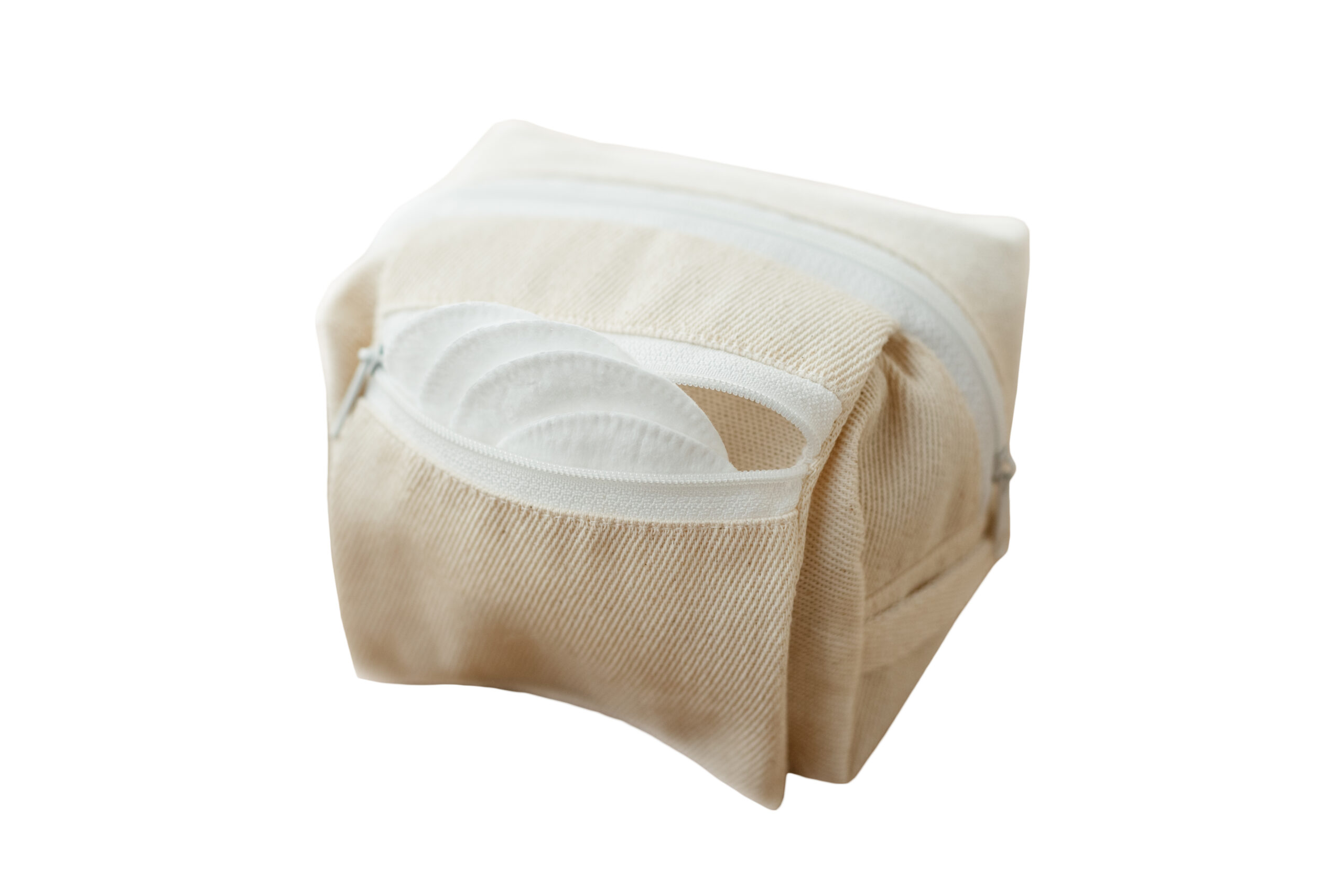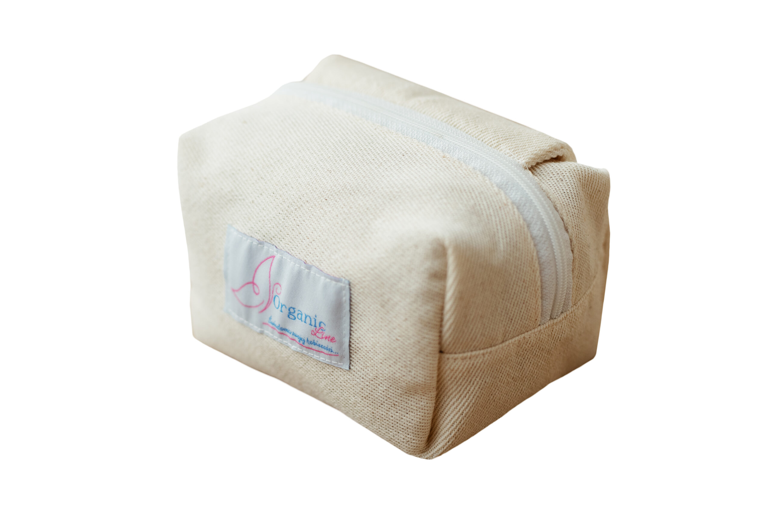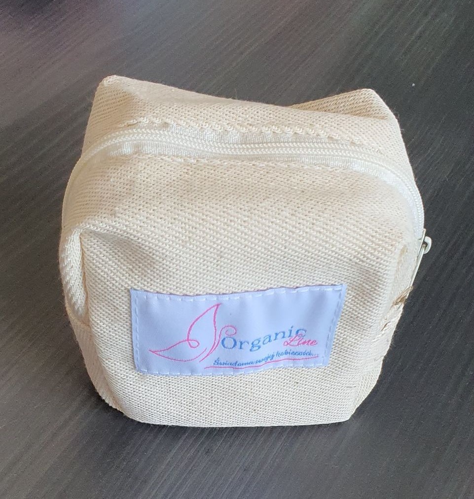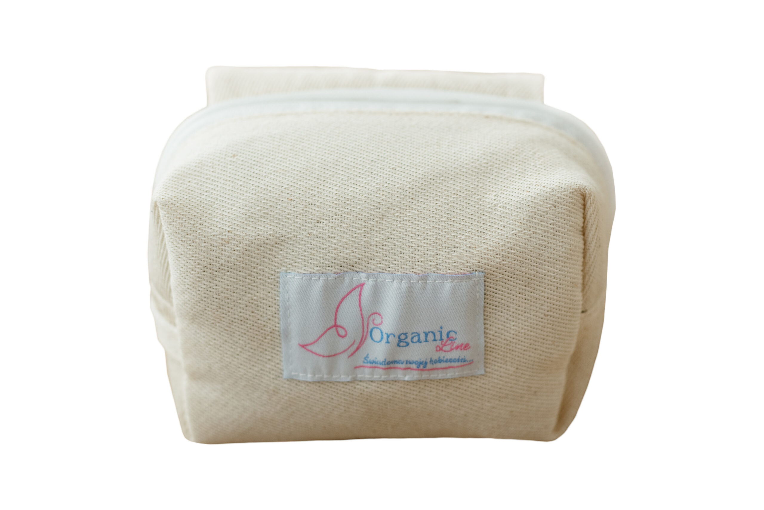 Bawełniany, nieprzemakalny organizer na artykuły sanitarno-higieniczne składa się z dwóch części – dużej komory głównej oraz bocznej, oddzielnej kieszeni. Każda z części posiada oddzielny zamek pozwalający na dowolne dysponowanie zawartością oraz ochronę zawartości przed wilgocią.