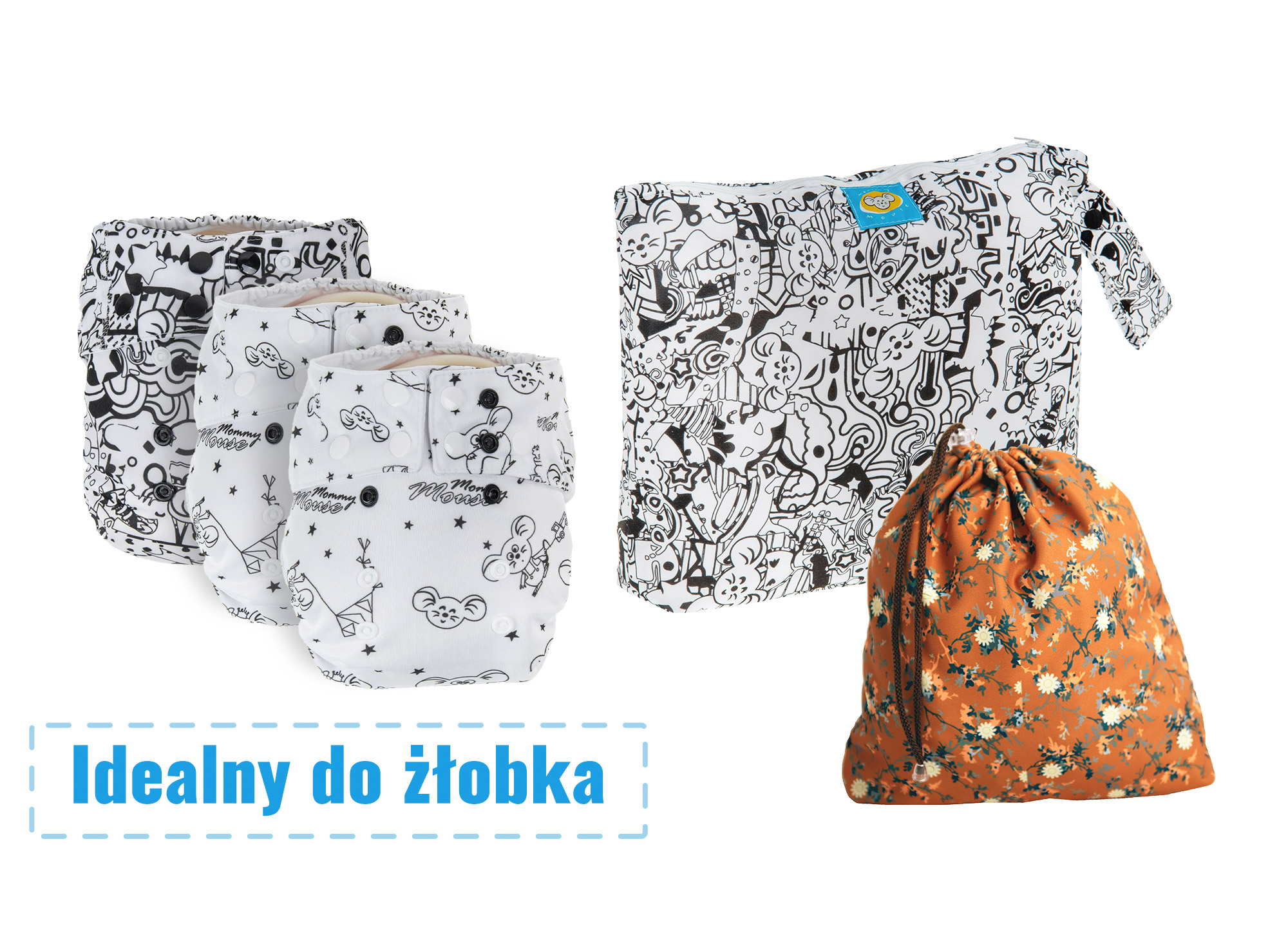 „MAŁY – Pakiet pieluszkowy idealny do żłobka” to świetne rozwiązanie dla zapracowanych rodziców, którzy zdecydowali się posłać swojego maluszka pod opiekę niań w pobliskim żłobku. Sprawienie wyprawki dla tak małego dziecka stanowi nie lada wyzwanie, dlatego marka Mommy Mouse przygotowała specjalny zestaw, który znacznie ułatwi jej organizację.