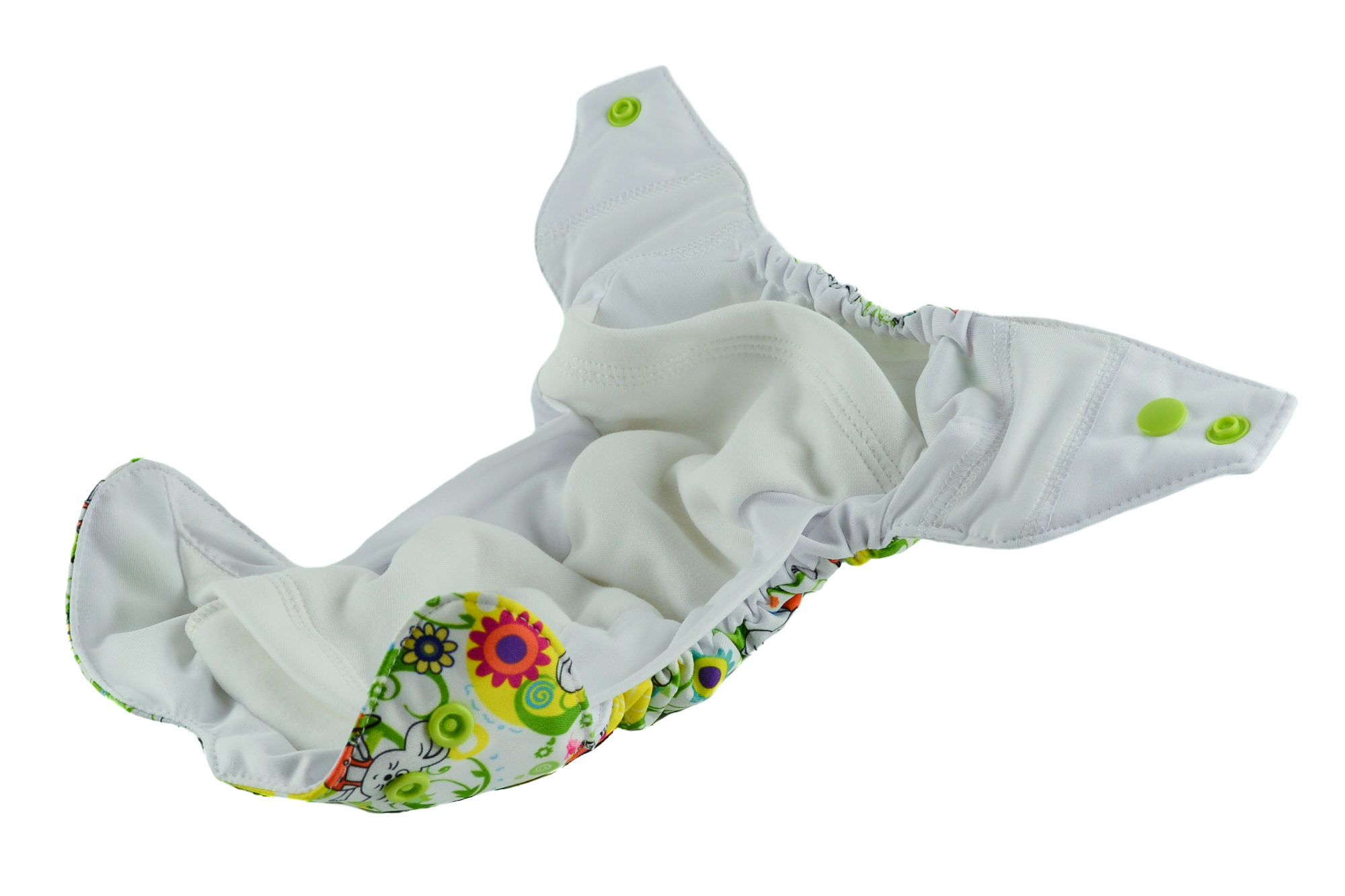 Delikatna gumka na pleckach oraz elastyczny element zszyty z łapką zapinającą-umożliwiają precyzyjne dopasowanie pieluszki jednocześnie nie powodując odcisków na skórze dziecka.