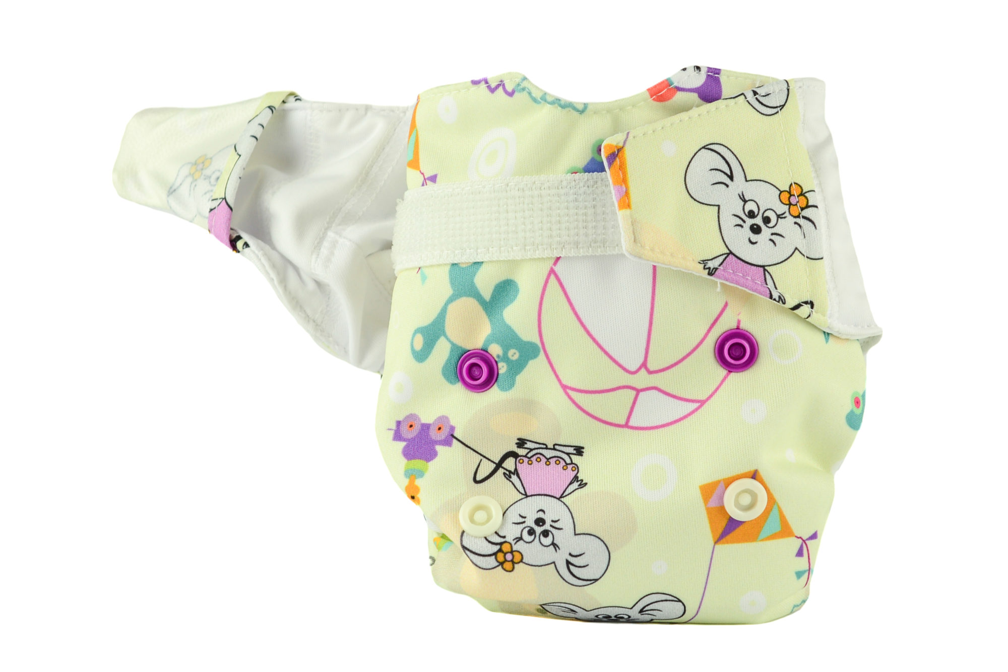 SYSTEM NO-CRUSH –delikatnie otulający nóżki dziecka-znane „burty” Mommy Mouse – zabezpiecza i uszczelnia oraz zatrzymuje mleczne kupki niemowląt – nie pozwalając wydostać się zawartości pieluszki na ubranko.