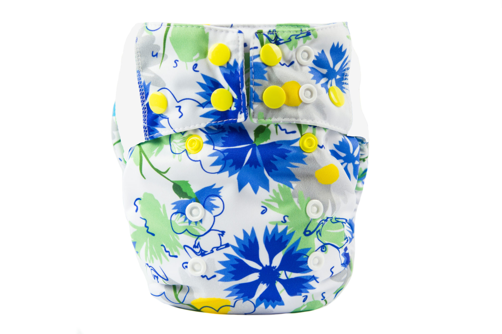 Rozmiar pieluchy kieszonki regulujemy w pionie za pomocą napek, skracając obwód gumek przy nóżkach i w pasie podwójnym rzędem napek. Bardzo gęste rozmieszczenie napek zapewnia możliwość jak najlepszego dopasowania pieluszki do rozmiaru dziecka, by czuło się w niej komfortowo.