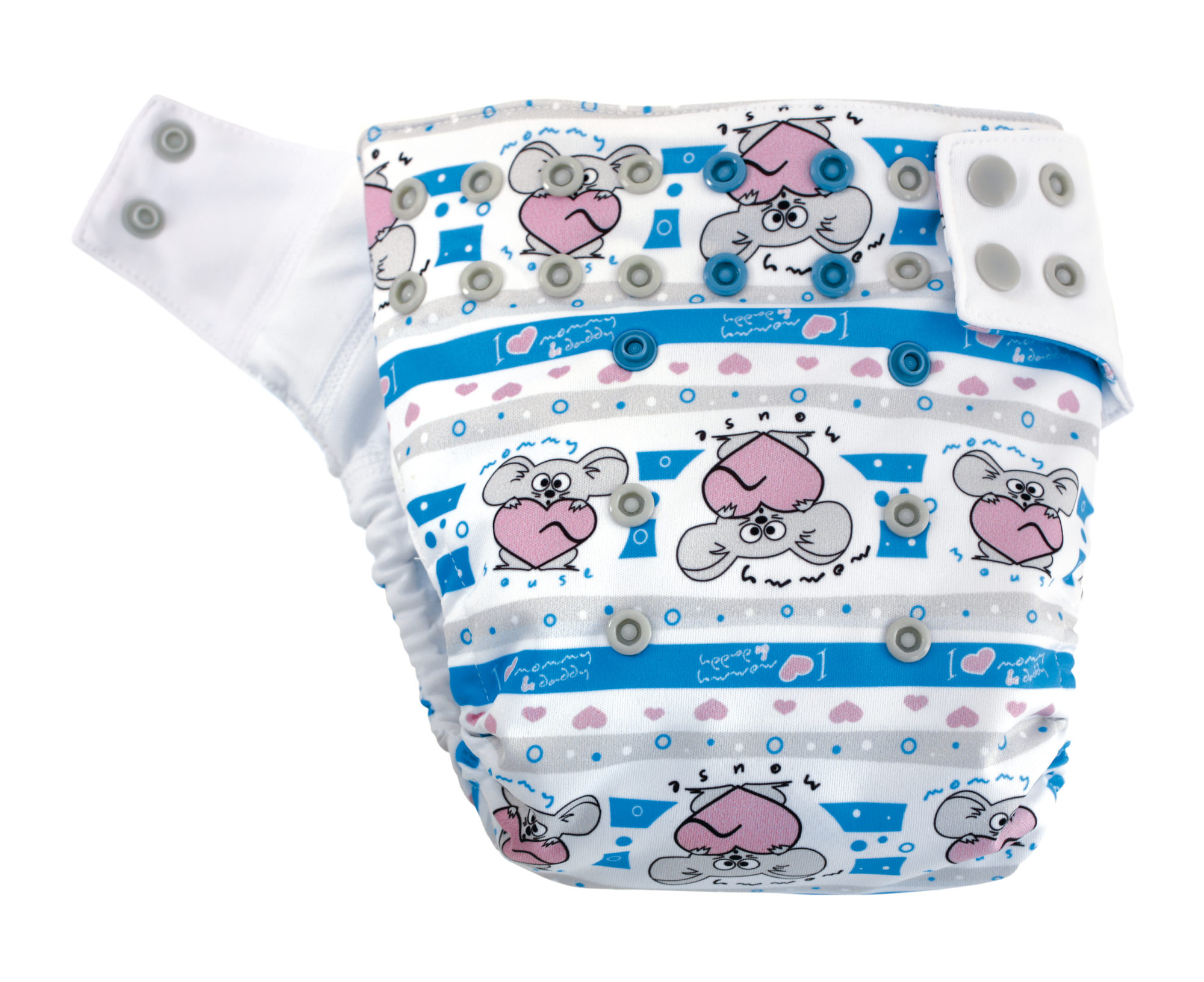 Zewnętrzny system nap spinających oraz dopasowujących rozmiar pieluszki został zaprojektowany w taki sposób, by otulacz zyskał szczelność oraz umożliwiał wygodne dopasowanie się do budowy ciała każdego dziecka.