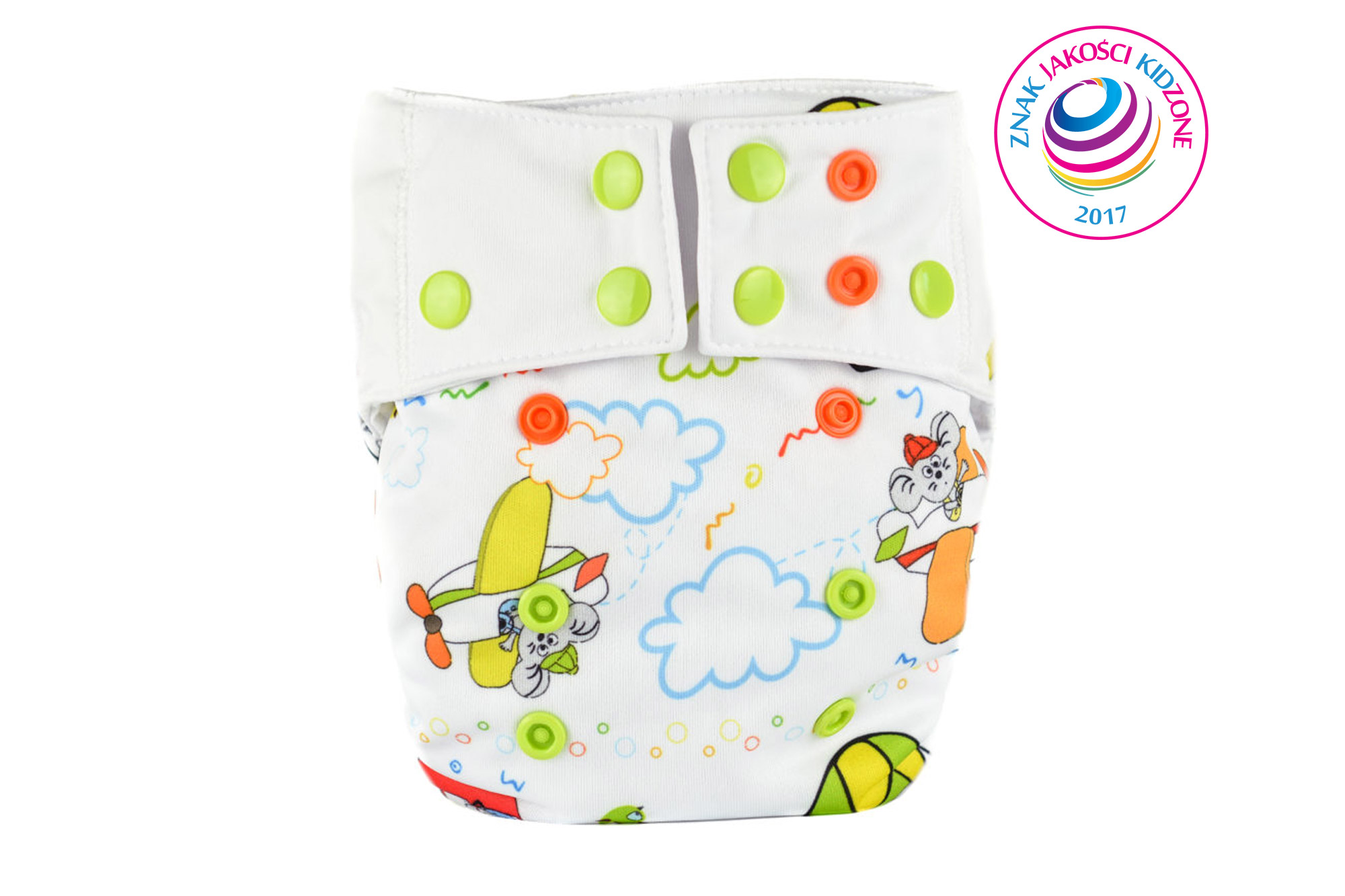 Sama pieluszka – otulacz została bardzo dokładnie zaprojektowana do zmieniających się potrzeb dziecka. Ma kilka elementów elastycznych, które pomagają w dopasowaniu pieluszki do zmieniającej się budowy dziecka. PUL został oddzielony od skóry dziecka kombinacją materiałów, które mają za zadanie utrzymać w pieluszce optymalną temperaturę i zapewnić doskonałą cyrkulację powietrza. Aby osiągnąć najlepsze warunki oddychalności pieluszki, do produkcji użyliśmy „ekspertów” w termoregulacji czyli materiałów, które wykorzystywane są w sportach ekstremalnych jednocześnie posiadające certyfikaty dla niemowląt tj. OEKO TEX Standard 100 i Bluesign CERTIFICATE.