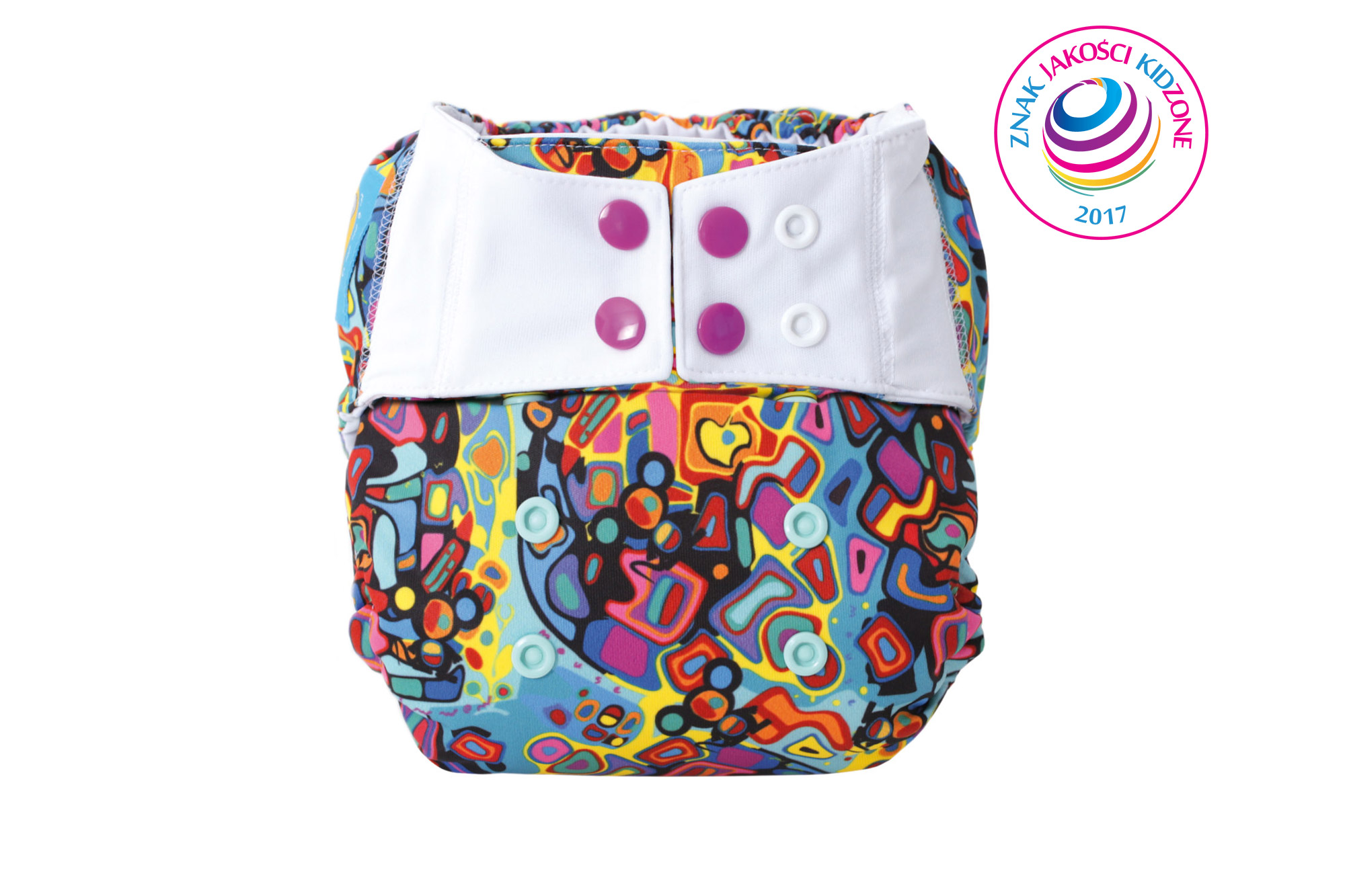 - podwójny rząd nap lepiej trzyma pieluszkę na bioderkach dziecka i w połączeniu z elastycznym elementem przy „łapkach” odciąża gumkę na plecach. Gumka na plecach ma za zadanie chronić ubranko przed wydostaniem się zabrudzeń, a nie trzymać pieluszkę na plecach. Dzięki temu gumka nie gniecie malucha w plecki.