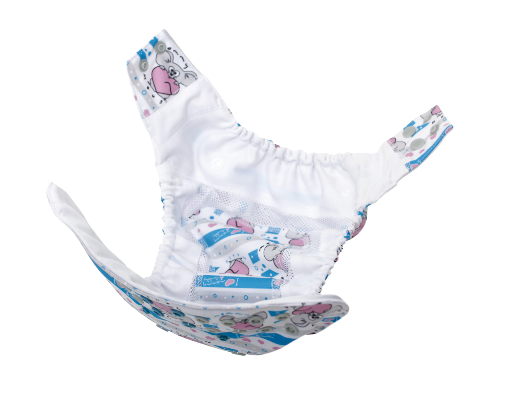 Sama pieluszka – otulacz została bardzo dokładnie zaprojektowana do zmieniających się potrzeb dziecka. Ma kilka elementów elastycznych, które pomagają w dopasowaniu pieluszki do zmieniającej się budowy dziecka. PUL został oddzielony od skóry dziecka kombinacją materiałów, które mają za zadanie utrzymać w pieluszce optymalną temperaturę i zapewnić doskonałą cyrkulację powietrza. Aby osiągnąć najlepsze warunki oddychalności pieluszki, do produkcji użyliśmy „ekspertów” w termoregulacji czyli materiałów, które wykorzystywane są w sportach ekstremalnych jednocześnie posiadające certyfikaty dla niemowląt tj. OEKO TEX Standard 100 i Bluesign CERTIFICATE.