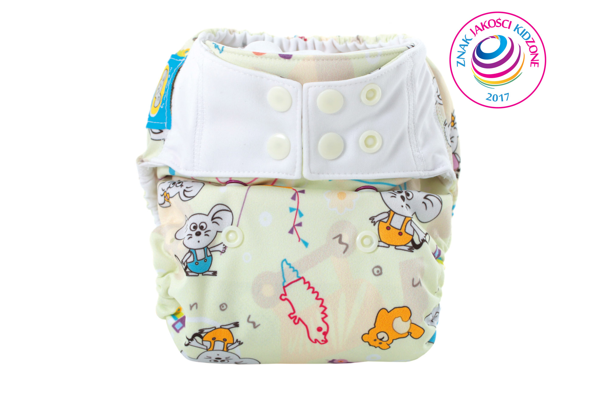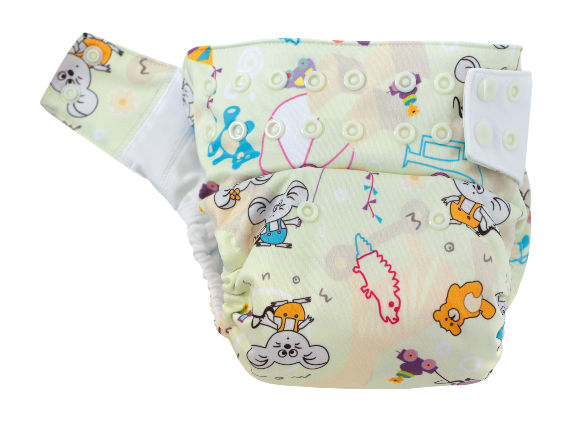 Pieluszka składa się z otulacza z systemowymi napkami, do którego „wpina się” wkłady klepsydrowe SIO Mommy Mouse.