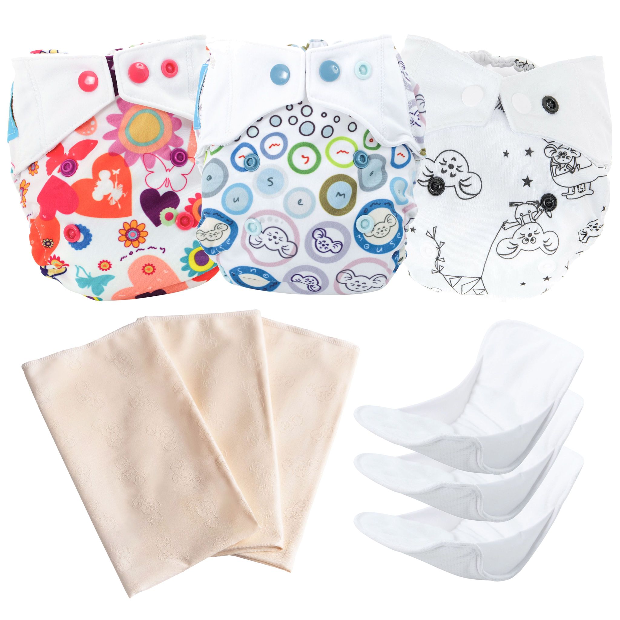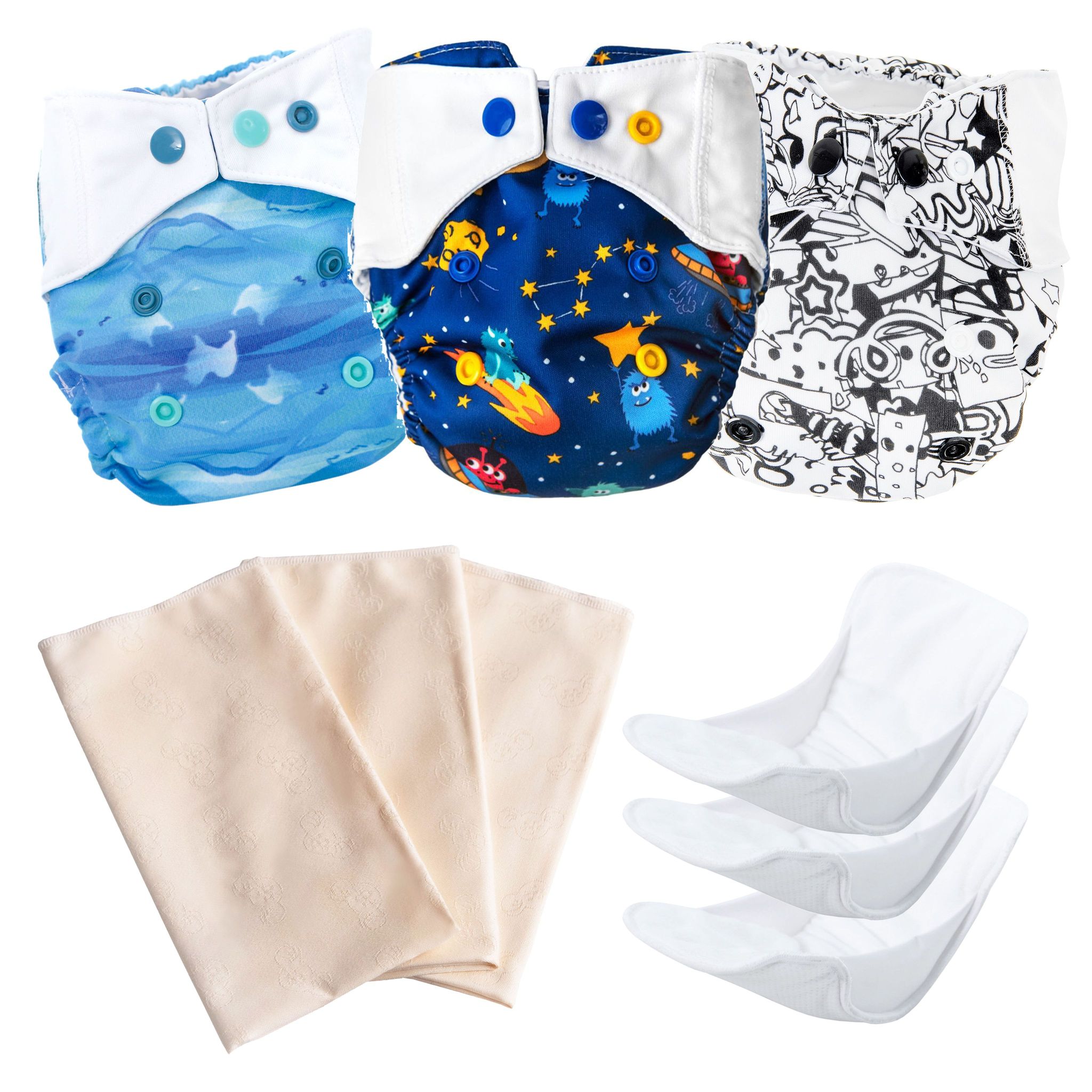 Aby umożliwić poznanie i przetestowania pieluszek dedykujemy zestaw pieluszek typu otulacz, wkładów chłonnych oraz TetryMouse w podstawowym pakiecie.
