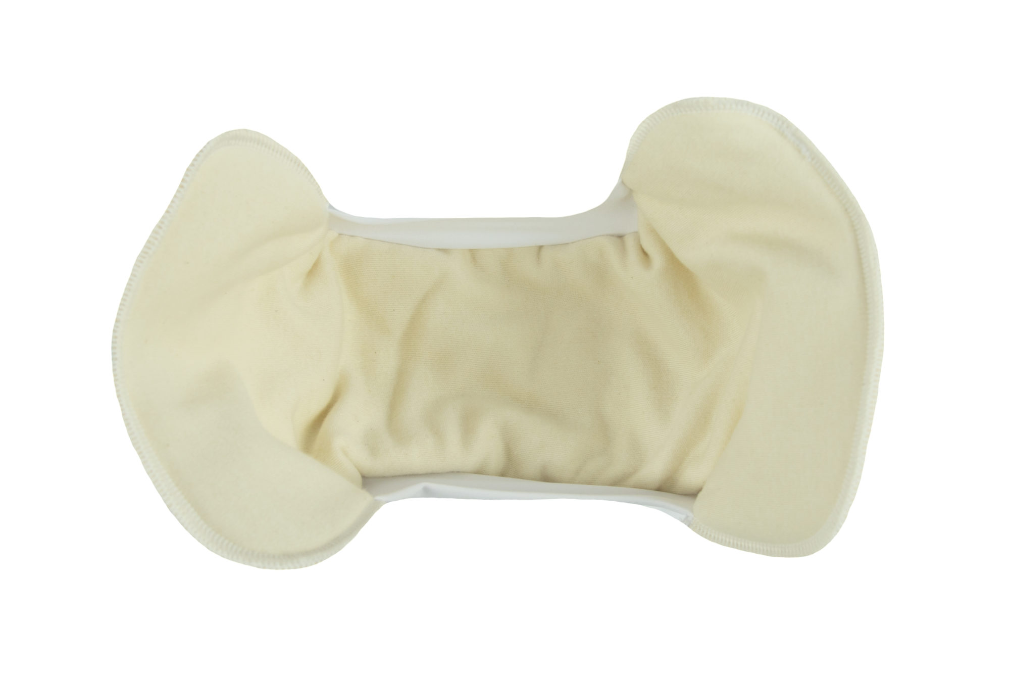 Klepsydrowy kształt wkładu dodatkowo zwiększa jego powierzchnię chłonną, przez co daje większą pojemność oraz generuje dodatkową powierzchnię absorpcyjną. Warstwy frotty otula delikatna, naturalna, niebielona bawełna w celu zapewnienia zdrowia i komfortu delikatnej skóry dziecka.