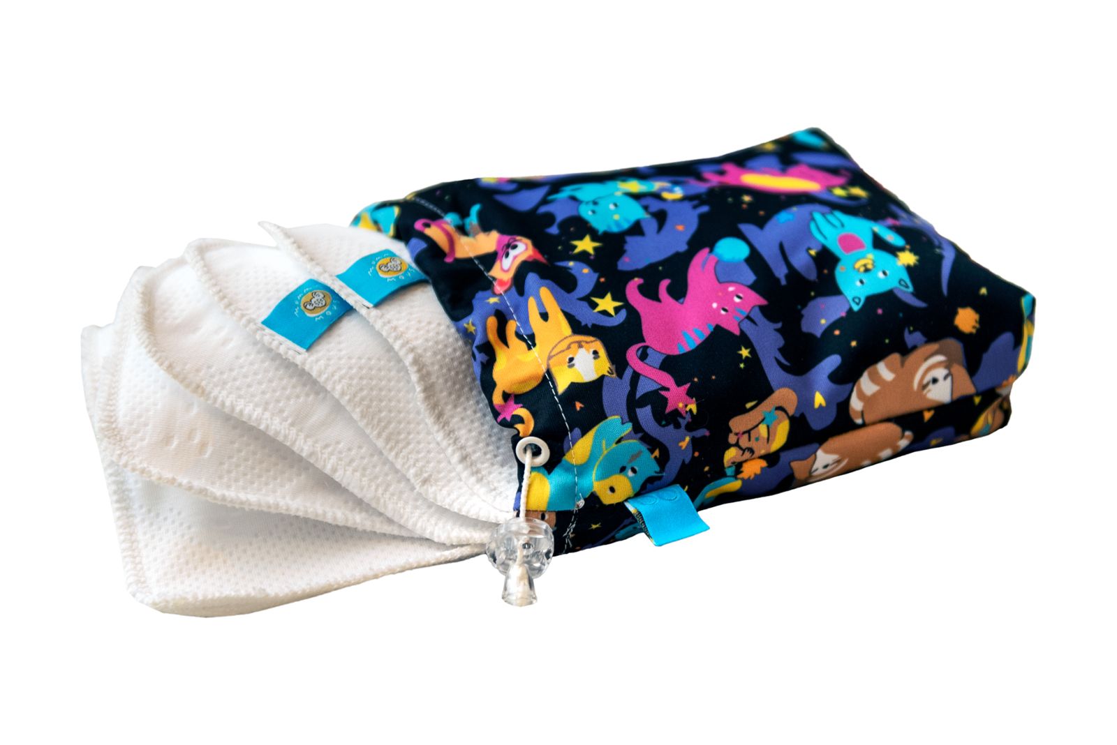 Woreczek na chusteczki wielorazowe + 5 chusteczek wielorazowych (SLEEPING CATS) - zestaw