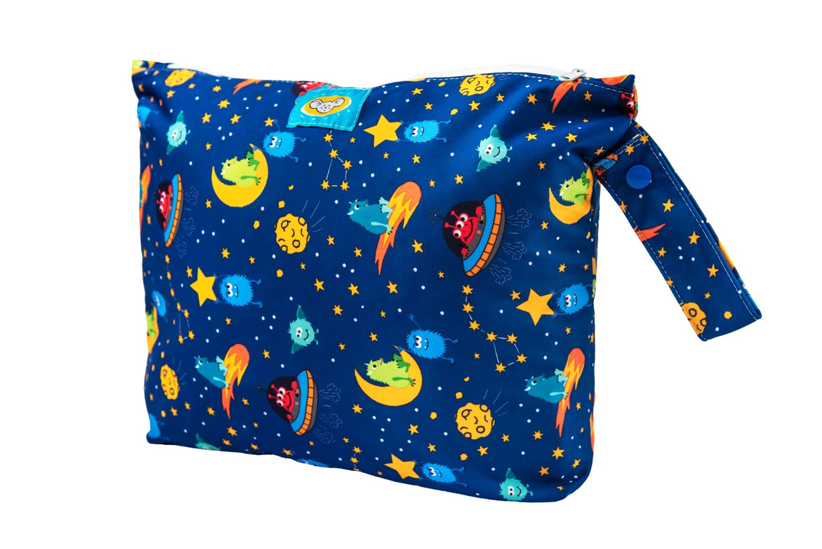 Worek został uszyty z PUL-u, posiada zapinanie na zamek oraz przydatny uchwyt z możliwością przypięcia do wózka lub roweru – to dobra propozycja na każdy wyjazd z maluchem. Woreczek pomieści ok. 5 pieluszek na zmianę wraz z wkładami chłonnymi.