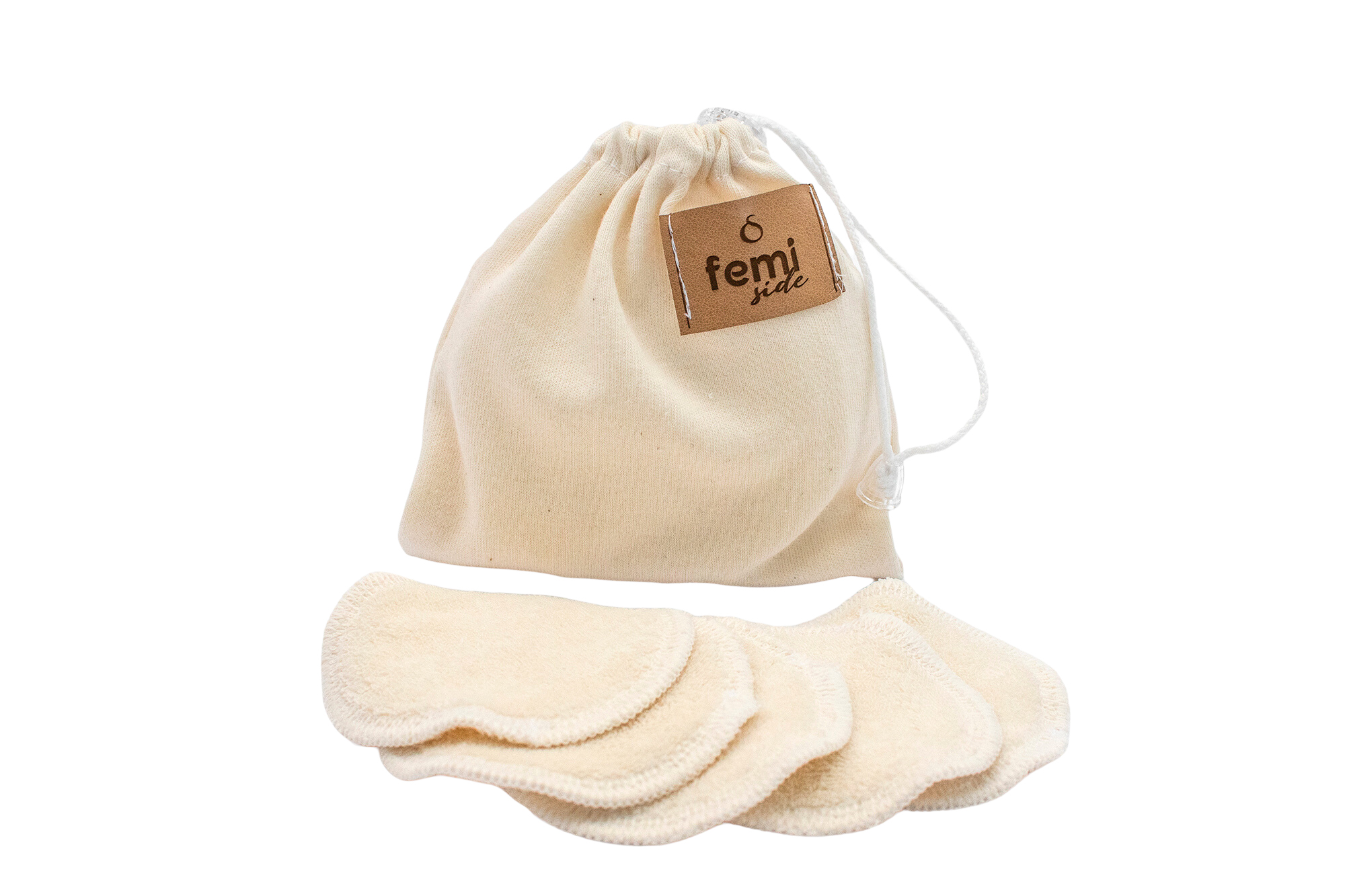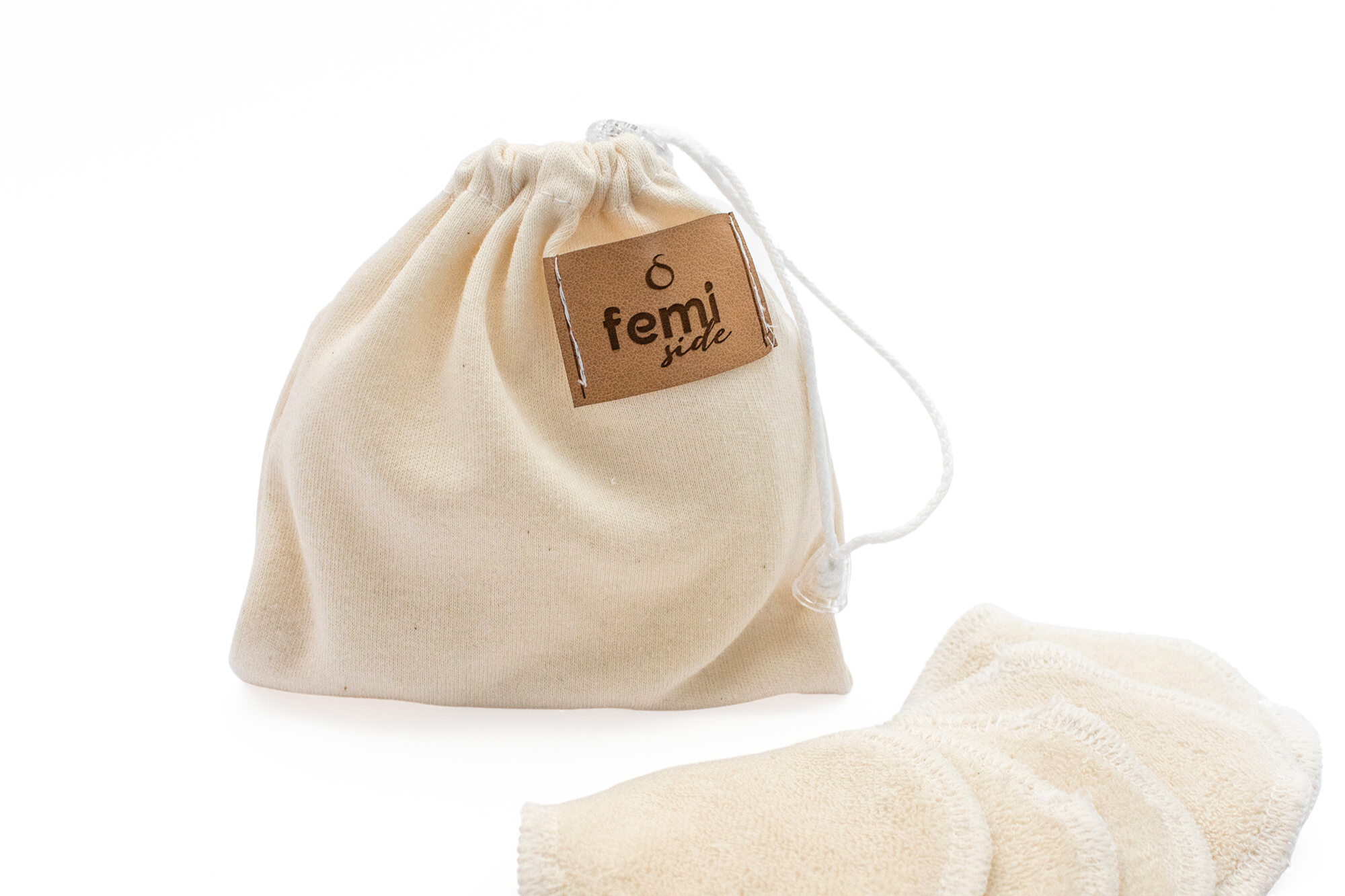 Komplet 5 sztuk naturalnych płatków kosmetycznych – niebielona bawełna organiczna. Szyte w Polsce, płatki bawełniane wielokrotnego użytku o średnicy około 7 cm. Z jednej strony delikatna, niebielona, organiczna bawełna, z drugiej miękka, naturalna frotta bawełniana. Idealny do zmywania makijażu, oczyszczania twarzy i szyi, mycia twarzy oraz ciekawskich rączek dziecka podczas spaceru. W zestawie z bawełnianym woreczkiem o wymiarach ok. 12 cm x 12 cm.